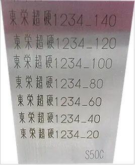 わかりづらいですが、下に行くほど濃い刻印です。薄い刻印は刻印による出っ張りがありません。